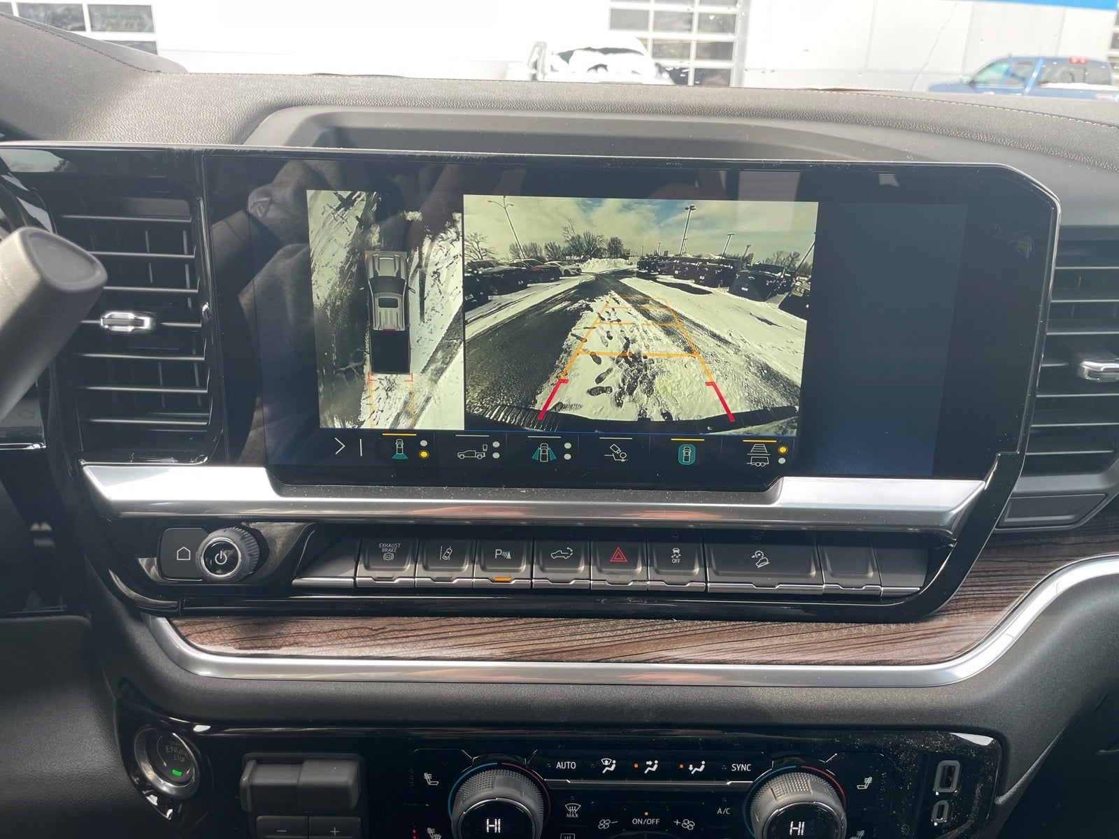 - Allows driver to see inside the cargo bed on the infotainment display to help with 5th wheel or gooseneck hitching and to check cargo